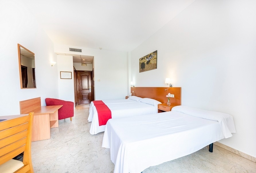 Hotel junto a Recinto Ferial (9-15 de Agosto), actuaciones gratis todas las noches junto al Hotel. Habitación luminosa con aire acondicionado, balcón con vistas al mar o a la montaña, y una decoración sencilla y tradicional. Incluye calefacción, TV de pantalla plana, caja fuerte y baño privado.